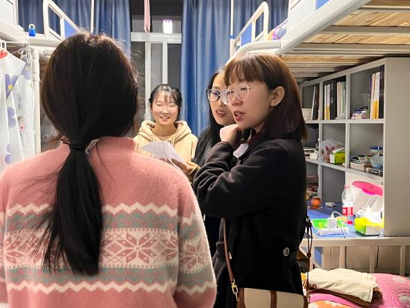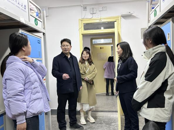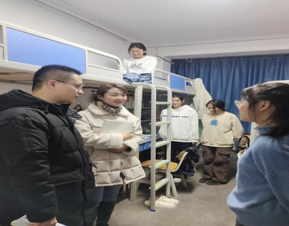 走访期间,学院领导与同学们亲切交流,关切地询问同学们寒假生活学习情况、身体健康情况、新学期目标规划、存在的困难等,叮嘱同学们要保持宿舍卫生环境整洁,提高安全防范意识,注意防诈骗和宿舍用电安全,鼓励同学们在宿舍内营造积极健康、团结进取的宿舍文化,并提醒同学们尽快调整作息习惯,尽快从“假期模式”切换到“开学模式”,以更加积极饱满的精神状态投入到新学期的学习生活当中,不断丰富老员工活。闫德娜同学表示将以饱满的热情,积极的态度迎接新学期,认真学习专业知识,不辜负老师和家长的期待,走好属于自己的多彩而丰富的人生道路。