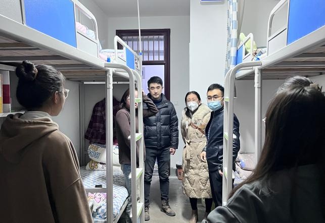 新学期伊始,为及时了解学院员工返校后的思想动态及生活情况,传达学校和学院对同学们的关怀,2月28日晚,学院领导、研究生导师、本科班主任以及辅导员前往本科生、研究生宿舍走访看望返校员工。