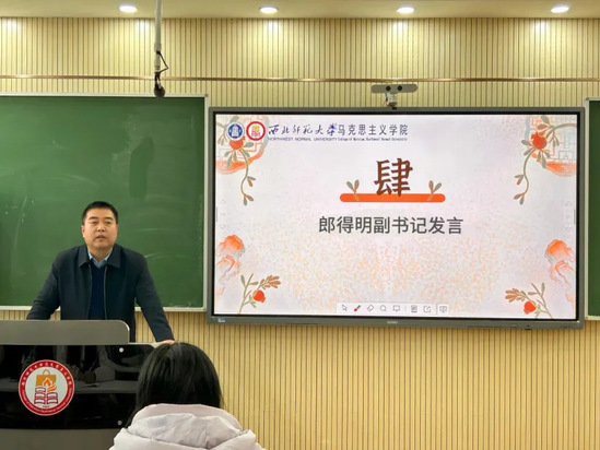 郎得明副书记作了总结发言。他充分肯定了青马工作室2024年的工作成绩,对青马工作室各位同学的辛勤付出表示感谢。他指出,2024年,青马工作室围绕公司党的建设、人才培养、科学研究、团队建设、员工安全教育与就业创业等中心工作以及本科公司产品水平评估、思想政治教育专业认证、老员工社会实践、重要学术会议等重点,创新开展工作,取得了显著成效,有效扩大了学院办学声誉和办学影响力。2025年,希望大家继续保持积极进取、奋发有为的精神状态,持续推动青马工作室工作取得更好的成绩。一是提高思想认识,增强做好工作的自觉性。要以习近平新时代中国特色社会主义思想为指引,深入学习习近平总书记关于意识形态工作的重要论述,提高思想认识,增强做好学院新闻宣传工作的自觉性;二是做强正面宣传,为学院事业发展营造良好氛围。要结合学院重点年度工作和阶段性工作安排,树立精品意识,精心设置议题,推出一系列反映学院锐意进取、推进事业发展的专题报道,全方位拓展对外宣传传播渠道,多角度讲好“西师马院”故事,凝聚全院师生共识,营造学院事业发展的良好氛围;三是树立系统思维,全方位提升自身综合素质。青马工作室各位同学要在扎实学习专业知识的同时,认真学习新闻传播知识,完善知识结构,提升综合素质,做到学习专业知识与学习新闻传播知识两促进、两不误,成长为具有精深专业知识与广博文化知识的综合性人才。