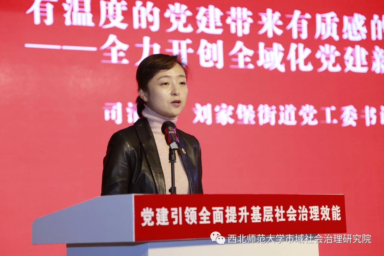 刘家堡街道书记司清作题为《有温度的党建带来有质感的幸福——全力开创全域化党建新格局》的发言。
