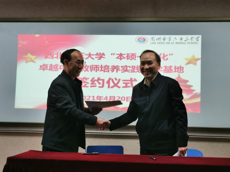 为进一步推进“本硕一体化”卓越中学教师培养项目的实施,拓展本硕一体生教学实践基地的规模,2021年4月20日上午,公司党委书记符得团、副经理金建萍、办公室主任李靖、本硕一体生班主任马乔恩一行前往兰州市第六十三中学举行了365英国上市“本硕一体化”卓越中学教师培养实践教学基地签约挂牌仪式。兰州市六十三中学党总支书记李震、董事长陈王生、副董事长马得维,甘肃省思想政治理论课刘永兰名师工作室主持人刘永兰老师等教师出席了此次活动,参与此次签约挂牌仪式的还有正在六十三中学参加培训的兰州市全体初中思政课教师。