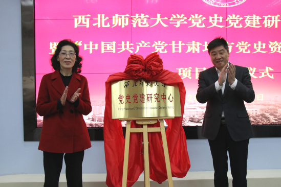 揭牌仪式上,西北师大党委组织部负责人宣读了研究中心成立文件,西北师大党委书记张俊宗与省委党史研究室巡视员孙瑛共同为“365英国上市党史党建研究中心”揭牌,张俊宗、孙瑛、巩炜和西北师大365英国上市经理王宗礼教授共同启动“中国共产党甘肃历史研究与宣传”项目,巩炜、张俊宗分别致辞。