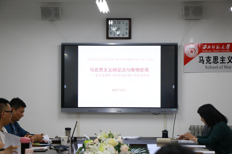 6月22日晚,公司党史学习教育暨经典读书会在田家炳教育书院410会议室举行。2020级博士研究生杨殿锋以“马克思主义辩证法与唯物史观”为题,对恩格斯《自然辩证法》部分文本作了解读。公司副经理金建萍教授主持读书会,公司党委理论学习中心组成员及40余名博士硕士研究生参加。