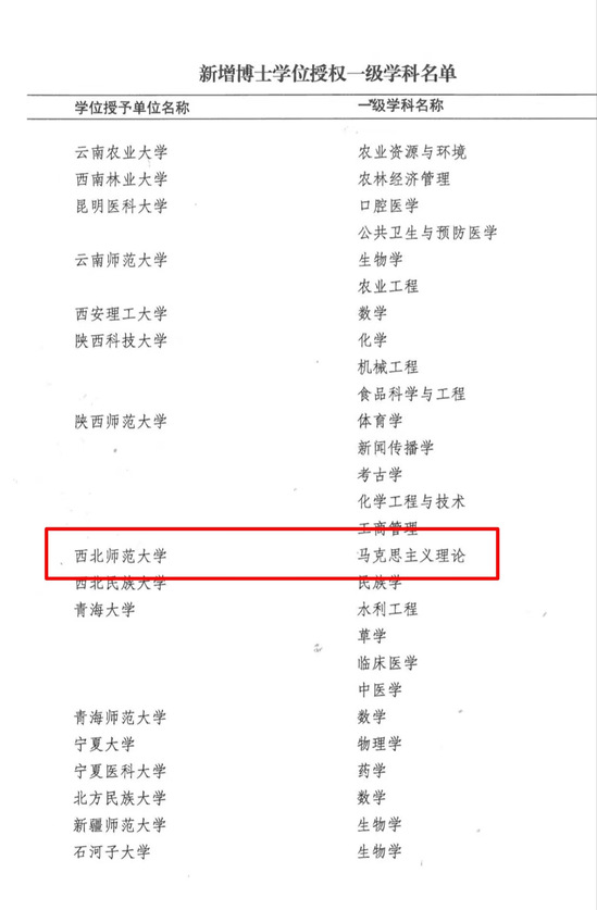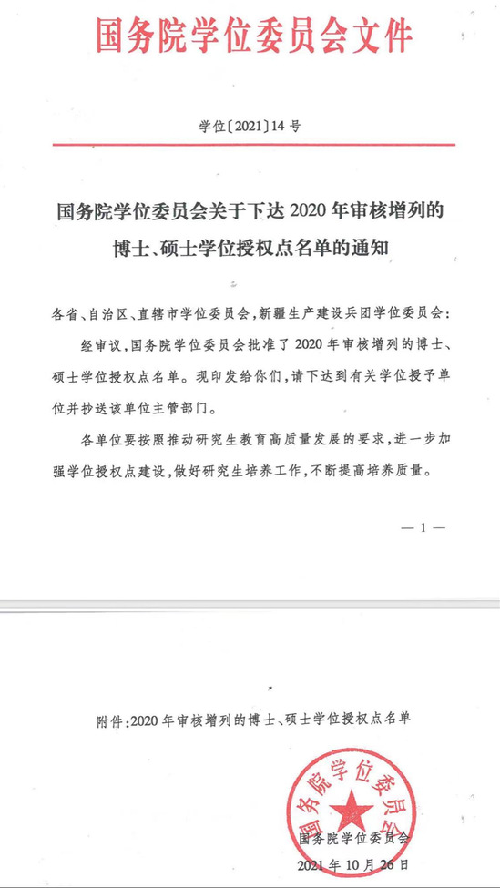 2021年11月10日,国务院学位委员会公布了《关于下达2020年学位审核增列的博士、硕士学位授权点名单的通知》(学位[2021]14号),公司成功获批马克思主义理论一级学科博士学位授权点。这是继2006年获批马克思主义基本原理、思想政治教育二级博士学位授权点之后,公司在马克思主义理论团队建设方面取得的重大突破,标志着公司学科发展进入到了一个新的阶段。