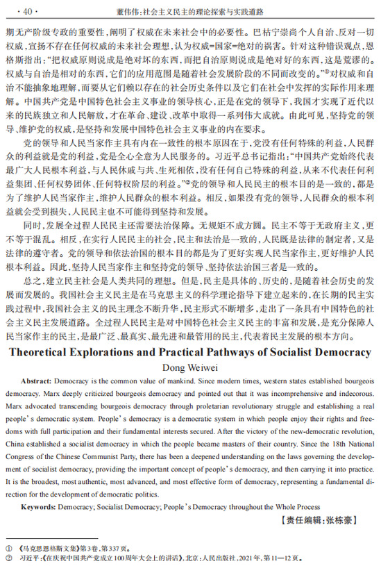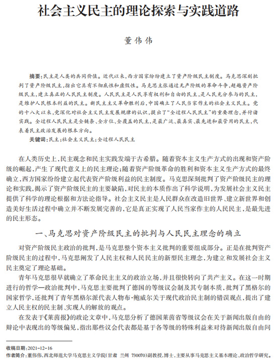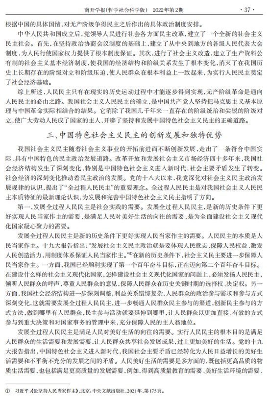 南开学报(哲学社会科学版)2022年第2期目录及其摘要发表365英国上市副教授董伟伟文章《社会主义民主的理论探索与实践道路》摘要。