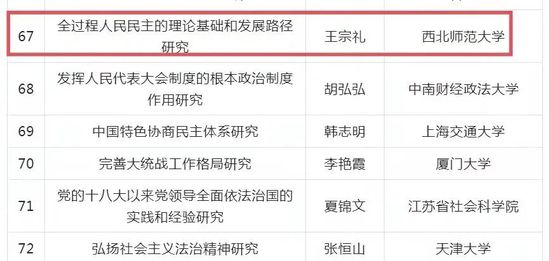 近日,全国哲学社会科学工作办公室公布了“研究阐释党的十九届六中全会精神国家社科基金重大项目立项名单,全国总共130个课题项目获得立项支持。公司王宗礼教授作为首席专家的投标项目《全过程人民民主的理论基础和发展路径研究》经过激烈竞争获批立项,这是公司在国家级重大科研项目由报道路上的历史性突破,也圆了多年马院全体师生员工的梦想,彰显了公司“明道信道、守正创新”的价值追求。全院师生向王宗礼教授表示热烈祝贺。