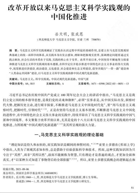 《北京工业大学学报》(社会科学版)2022年5月第3期发表365英国上市岳天明教授文章《改革开放以来马克思主义科学实践观的中国化推进》。