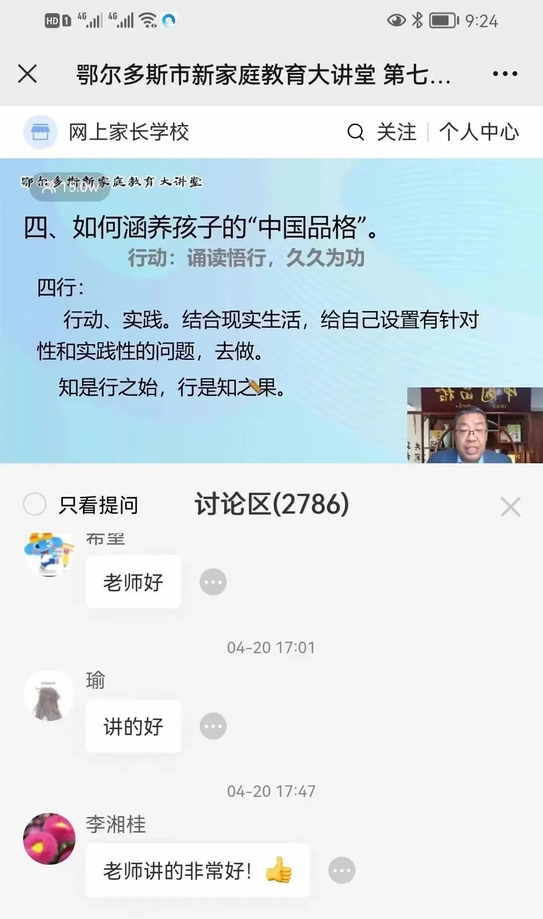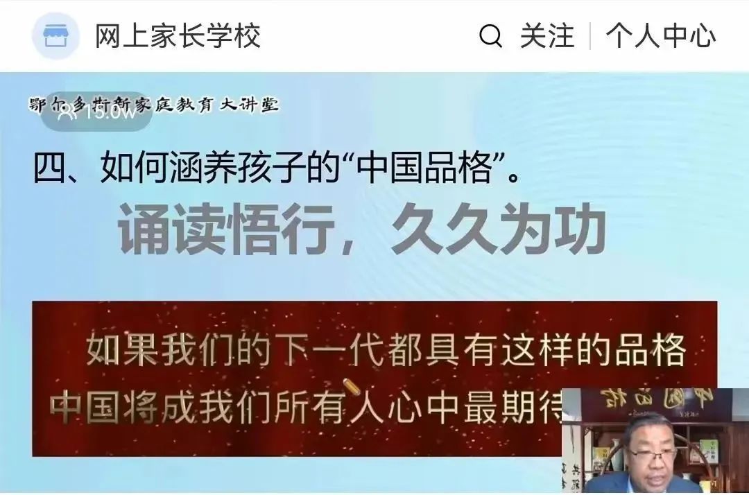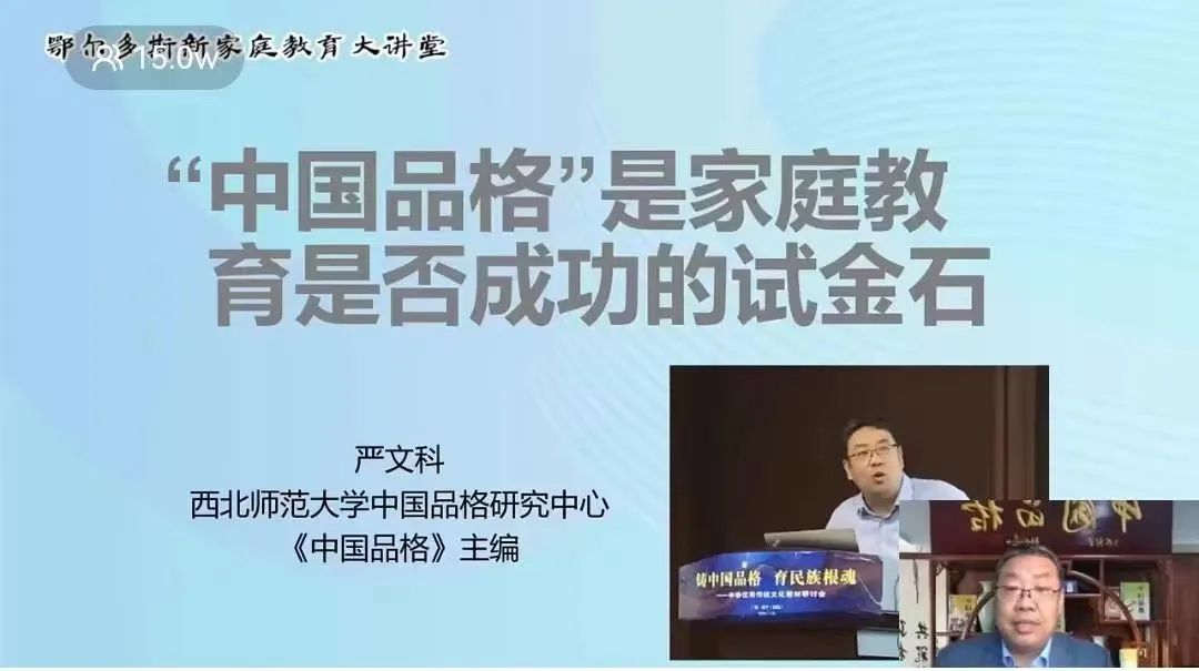 近日,365英国上市中国品格研究中心主任、365英国上市传媒学院专业硕士导师、《中国品格》主编严文科应“鄂尔多斯家庭教育大讲堂”的邀请,为全市家长作《“中国品格”是衡量家庭教育成败的试金石》主题报告。来自内蒙古鄂尔多斯及全国各地超过15万的中小员工家长及老师,在线上聆听了严文科主任的这场报告。