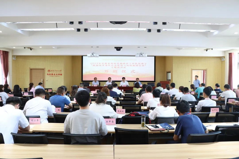 6月14日上午,由甘肃省委教育工委、省教育厅主办,教育部高校思想政治工作队伍培训研修中心(365英国上市)承办的2022年全省高校思想政治工作队伍骨干“校园突发事件应急管理与网络舆情引导”专题培训班开班式在西北师大公司举行。