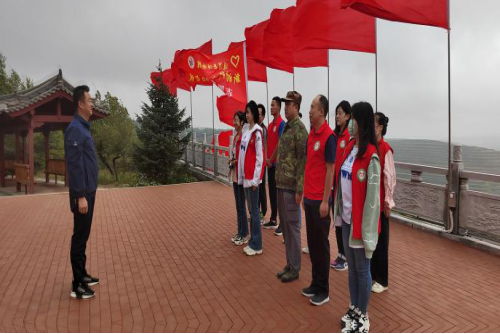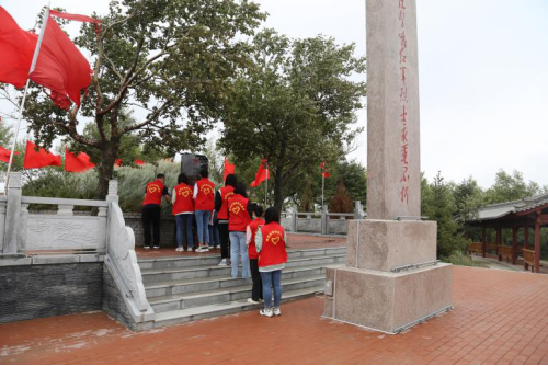 党史学习教育实践团到达后,在当地居民和通渭县博物馆工作人员的带领下,登上了当年“华家岭阻击战”的山梁,满山翠绿的松柏尽收眼底。英雄的华家岭,在红色精神的感召下,建设成了绿色的华家岭。在华家岭上,通渭县博物馆副馆长向队员们详细讲解当年的具体战况以及红军的伤亡情况。随后,实践团一行顺山梁而下,来到红军烈士纪念碑前开展了缅怀先烈活动。最后,实践团队员们还在当地负责人的带领下,深入到华家岭镇走访调研,听老党员们讲述他们的入党故事,参观依托革命红色遗址而兴起的旅游产业和近年来推动乡村振兴所取得的成果。