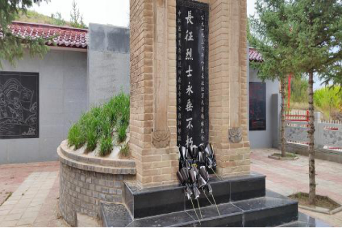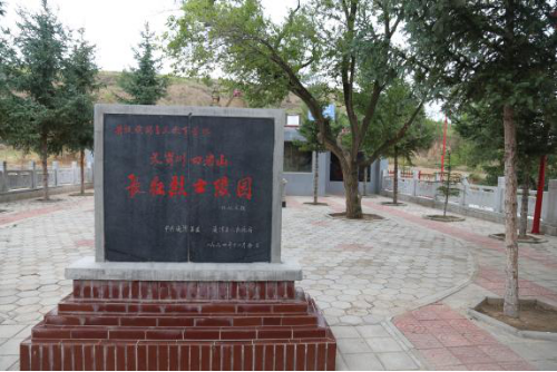 义岗川四岩山红军长征烈士陵园位于甘肃省通渭县义岗乡境内。1936年10月初,以贺龙、肖克为正副总指挥的红二方面军总部、红二军、红三十二军长征途经义岗,欲至会宁同红军三大主力会师。然而,在途经通渭县时,遭到义岗镇董家堡子里的国民党通渭县保安大队和当地大土豪董本斋民团的阻击。红军与敌激战,并组织攻打城堡。一次未克,红军无心恋战,继续北进,当行至马岘、四岩山、王家河滩一片开阔地带时,突遭敌机的狂轰滥炸,红军无从隐蔽,伤亡颇重,23名红军战士壮烈牺牲,史称义岗川战斗。1957年9月1日,原义岗区政府修建了四岩山红军烈士陵园,竖立“长征烈士永垂不朽”的墓碑。1994年12月通渭县委、县政府命名四岩山红军烈士陵园为“县级爱国主义教育基地”。1998年8月,义岗川乡委员会、乡政府、通渭县民政局筹措资金重建陵园,竖立陵园命名碑,补墓碑、碑文,筑护坡、栏杆等,增其旧制,以告慰先烈英魂,光大长征精神。