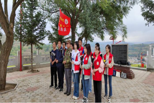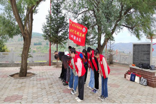 到达目的地后,实践团队员们在工作人员的带领下,来到了义岗川四岩山红军长征烈士陵园纪念碑前,举行了庄严肃穆的缅怀革命先烈活动。实践团队员们在纪念碑前献花、默哀,以此表达对革命先烈的缅怀之情。