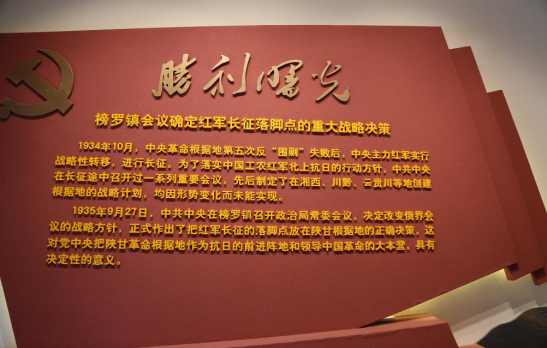 榜罗镇位于甘肃省定西市通渭县榜罗镇。甘肃通渭县是红军长征过境地域最广、活动时间较长、过境部队最多的地区之一,是中国革命走向胜利的决策地,三军胜利会师前的活动地,实现北上抗日的转折地。1935年9月27日,毛泽东、张闻天、周恩来、博古、王稼祥在榜罗镇中心学校董事长办公室召开了中共中央政治局常委会议,史称“榜罗镇会议”。会议讨论研究了当时的形势和陕北的军事、政治、经济状况,决定改变俄界会议关于首先赤化甘南,在靠近苏联的地方建立根据地,打通国际路线的战略方针,作出把红军长征落脚点放在陕北的重大决策。会议一致同意毛泽东提出的陕甘支队迅速到陕北与红二十五、红二十六军会合,并提出“保卫与扩大陕北苏区”的新的战略方针。榜罗镇会议是党中央在长征途中召开的一次极为重要的会议,它解决了红军长征以来一直未能解决的建立巩固的革命根据地的问题,在中国革命史上具有十分重要和深远的意义。