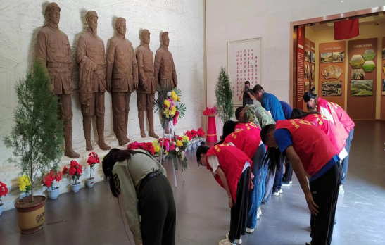 来到榜罗镇会议展陈馆,实践团队员们和通渭县博物馆志愿者在纪念馆前举行了缅怀革命先烈活动。庄严肃穆的追缅仪式让队员们感慨万千,深刻认识到新中国是无数革命先烈用鲜血和生命换来的,我们今天的幸福生活是革命先烈前仆后继、流血牺牲的结晶,革命先烈们是我们心中最可敬的人,也是最可爱的人。