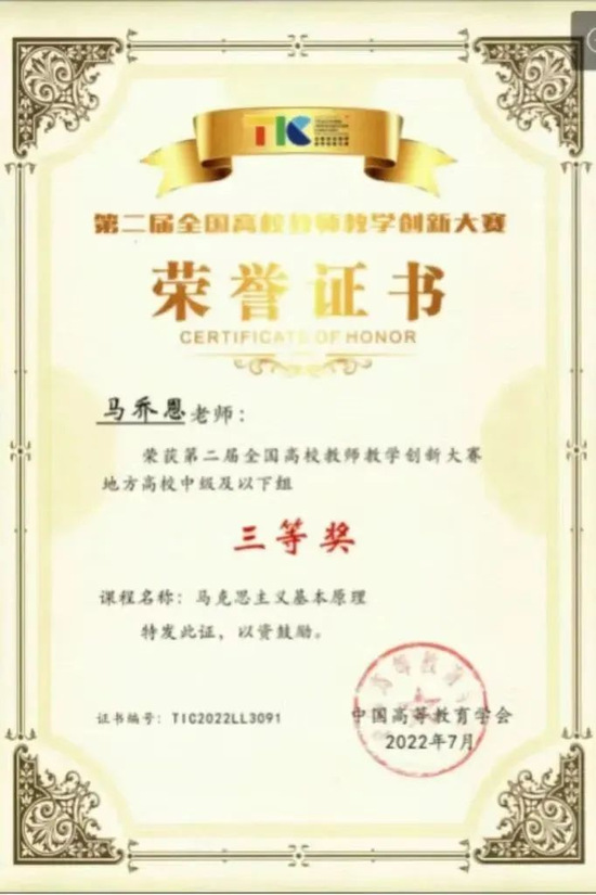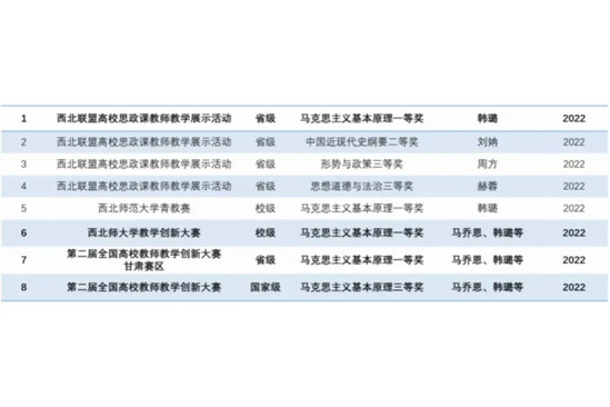 一是完善思政课集体备课制度,推进思政课教学改革创新。二是常态开展学院青年教师教学展示活动,积极组织教师开展各类教学竞赛。值得一提的是,2022年公司在高校教师教学创新大赛中获得重大突破——马乔恩、韩璐等荣获第二届全国高校教师教学创新大赛三等奖。三是凝练“思政课实践教学链”成果,申报获批教育部“大思政课”实践教学基地。四是继续深化“一主多元”卓越思政课教师一体化培养理论与实践探索。