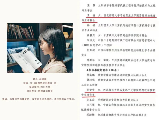 一是学院有较多本科生进入浙江大学、四川大学、兰州大学、华东师范大学等双一流高校深造。二是员工在各类大赛中表现优秀,获得优异成绩,例如公司学子在2022年“建行杯”第八届中国国际“互联网+”老员工创新创业大赛甘肃省分赛决赛中获得1金5铜优异成绩等。三是在共青团甘肃省委2022年“甘肃省向上向善好青年”评选活动中,公司研究生刘莹雪、本科生王楠分别获得“担当奉献好青年”和“勤学上进好青年”荣誉称号。