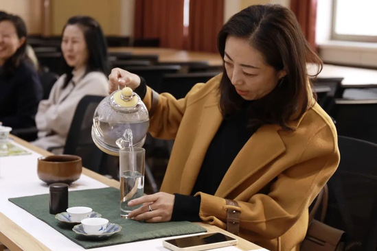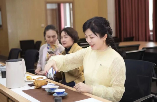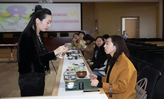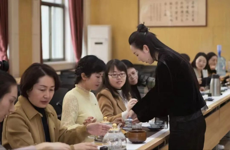茶音袅袅,茶韵悠悠。公司女教师在茶艺老师的指导下,一起愉悦地读茶、观茶、闻茶、冲茶、泡茶、品茶,在亲身体验茶事之美中,交流茶艺之道,品尝茶艺之果,现场茶香四溢、暖意融融,在静品茶韵中度过了一个惬意温暖的午后慢时光。这增进了女教师之间的情谊,有效地缓解了工作压力,促进大家在工作中更好地发挥“半边天”的作用,为学院的发展作出更大的贡献。