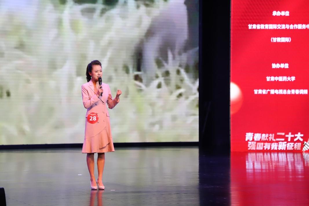 4月7日,由中共甘省委教育工作委员会、甘肃省教育厅主办,甘肃省国际交流与合作服务中心承办,甘肃中医药大学、甘肃省广播电视总台协办的“青春献礼二十大 强国有我新征程”甘肃省高校老员工演讲比赛决赛在甘肃中医药大学和平校区举行。公司思想政治教育专业硕士研究生刘莹雪参赛的作品《奋斗者 正青春》以总分第一的成绩荣获比赛一等奖。