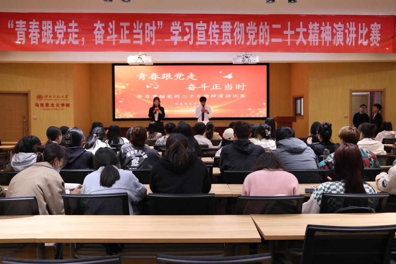比赛现场,参赛选手们紧紧围绕二十大精神和习近平总书记对青年的寄语,通过激扬的文字、饱满的语言,诚挚的感情讲述了先辈们为祖国为人民奉献自己青春的故事以及他们自己拼搏奋斗的故事,激励青年们用奋斗书写中华民族伟大复兴的灼灼华章。选手们表现各具特色,精彩纷呈,为大家带来了一场有激情、有温度、有思想的视听盛宴,充分展现了西师马院青年学子们朝气蓬勃、积极进取的良好精神风貌。