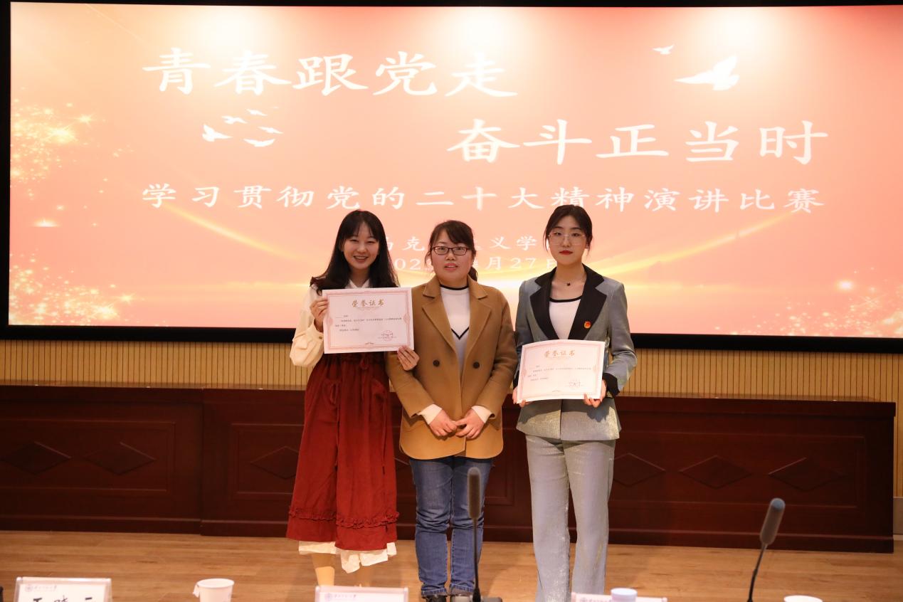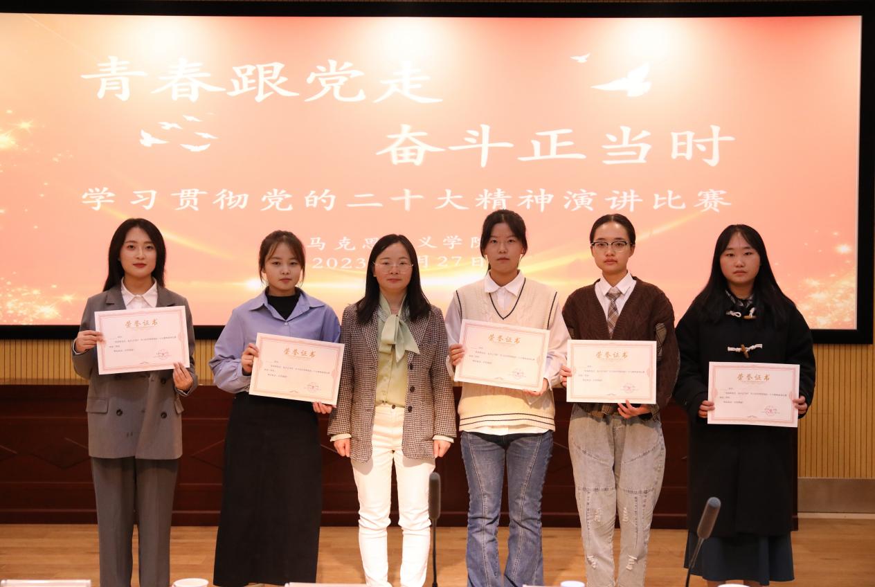 经过选手们紧张激烈地角逐和评委们客观公正的评分,最终评定闫云露、赖发珊获得一等奖,豆彩、党玉蕊等五位同学获得二等奖,王增佳、张祥等七位同学获得三等奖。评委老师为获奖的同学颁发荣誉证书并合影留念。