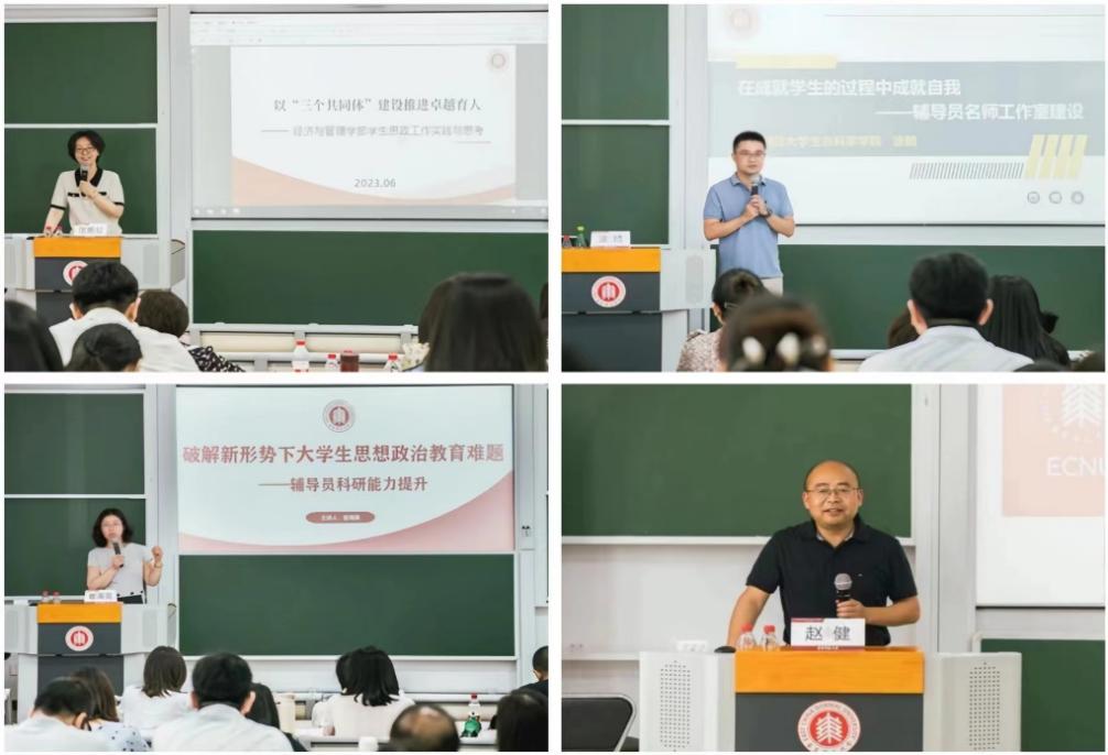 在理论教育与能力提升环节,教育部高校思想政治工作队伍培训研修中心(华东师范大学)副主任张俊华教授作题为“习近平关于教育的重要论述与辅导员能力提升”的报告;华东师范大学党委员工(研究生)工作部部长赵健聚焦辅导员队伍建设作主题报告;华东师范大学公司党委副书记崔海英教授作题为“破解新形势下老员工思想政治教育难题——辅导员科研能力提升”专题报告;华东师范老员工命科学公司党委副书记兼副经理涂皘作题为“在成就员工的过程中成就自我——辅导员名师工作室建设”专题报告;华东师范大学经济与管理学部党委副书记张艳虹作题为“以‘三个共同体’建设推进卓越育人——经济与管理学部员工思政工作实践与思考”专题报告,并带领全体学员赴理科大楼陈彪如学术成就陈列室开展沉浸式教学。