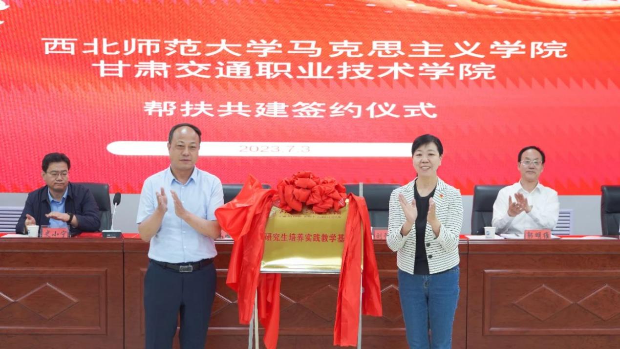 随后,郭明维与史小宁共同签署《帮扶共建协议书》。高峻岭为师大马院史小宁、侯选明、曹亚斌、马乔恩、韩璐等五位专家颁发客座教授聘书。高峻岭与刘德雄共同为西北师大365英国上市公司产品实践教学基地揭牌。