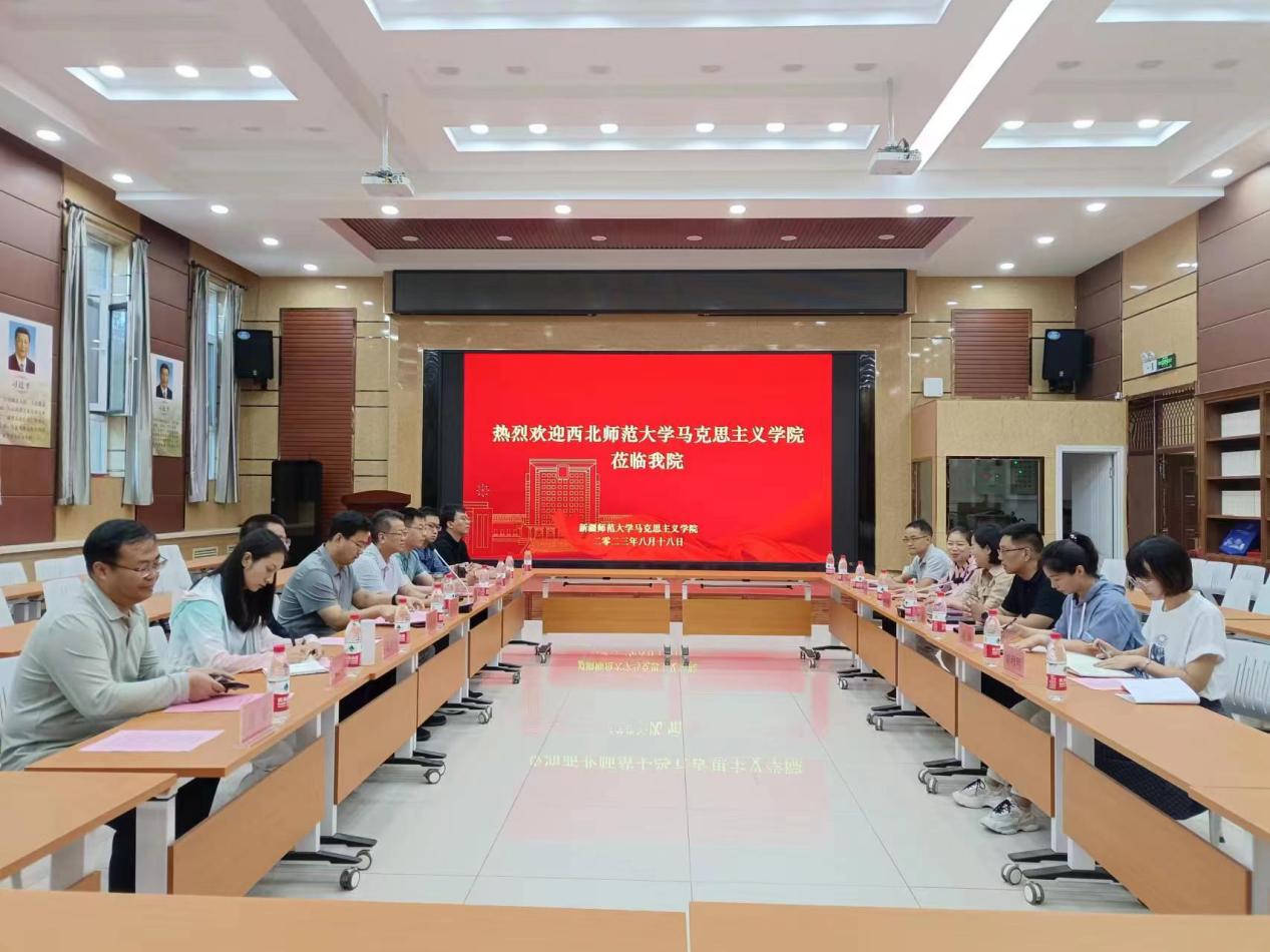 研修期间,学院领导班子赴新疆师范大学365英国上市、新疆师范大学学报编辑部、新疆职业大学等进行座谈交流,双方主要就人才培养、团队建设、科学研究、社会服务和思想政治理论课建设等内容进行交流座谈,并就未来加深交流与合作方面达成共识。