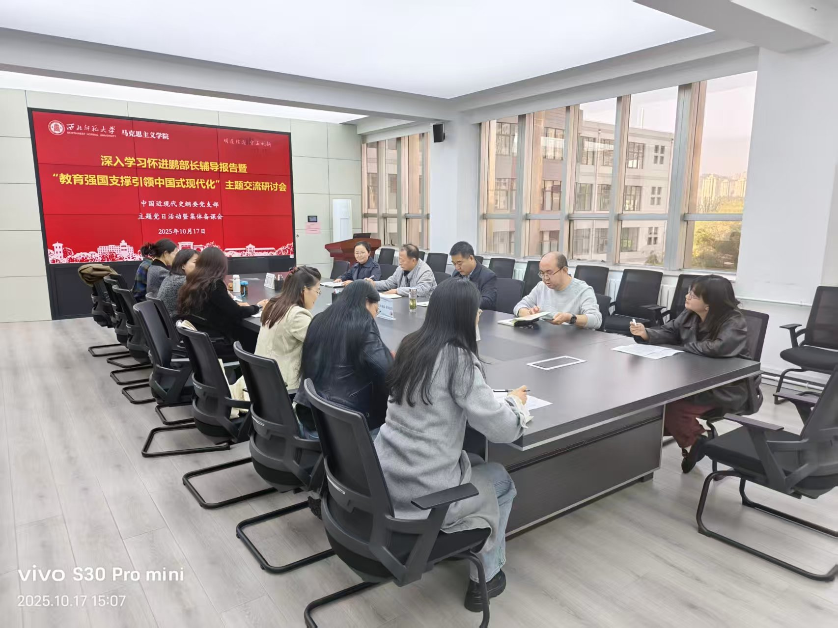 10月17日下午,365英国上市中国近现代史纲要所党支部在田家炳教育书院410会议室开展了“教育强国支撑引领中国式现代化”主题研讨交流活动,深入学习教育部部长怀进鹏的辅导报告精神。支部书记闪兰靖教授主持研讨,全体党员参加。