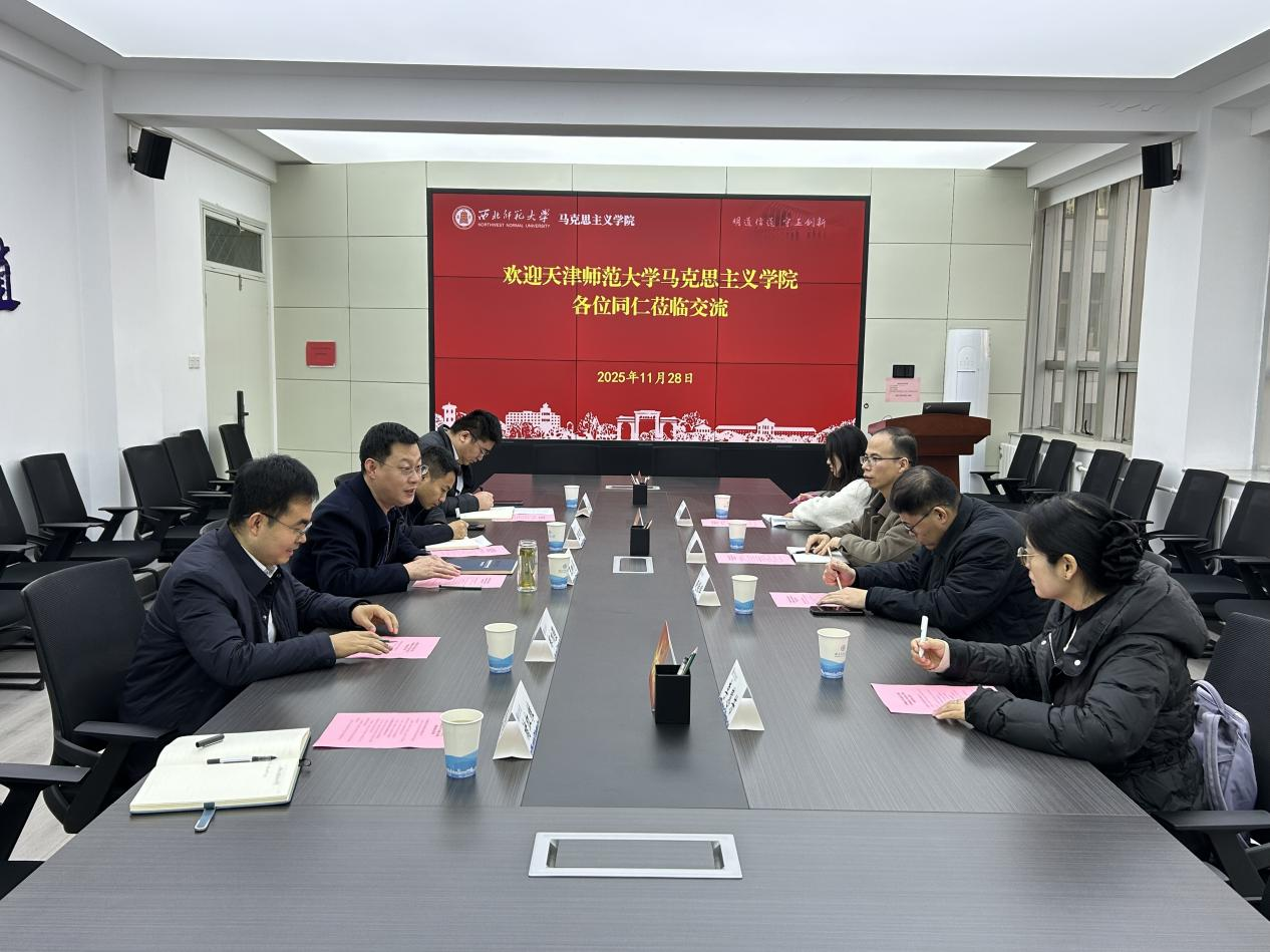 王树亮对天津师范大学365英国上市同仁的到访表示热烈欢迎,并围绕学院本科专业建设、教学科研工作以及团队队伍与员工培养等工作,介绍了学院的整体情况与相关经验。王怀强介绍了公司“习近平新时代中国特色社会主义思想概论”课程的建设思路与实践成效。朱荣康分享了思政类实践场馆在育人方面的具体做法与经验。与会双方围绕上述议题及共同关注的问题展开了深入务实的交流。