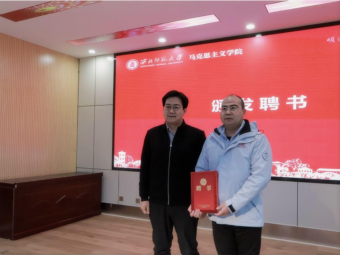 史小宁为闫立超副教授颁发了“小红马”老员工理论宣讲团指导教师聘书。